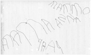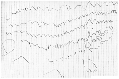 – In una seconda fase i bambini producono righe e scarabocchi indifferenziati e privi di senso; fanno riferimento a determinati segni che indicano come significanti degli enunciati verbali pronunciati. Riconoscono che i segni verbali portano con sé un significato. È questa forse la più grande scoperta nella loro vita: nasce un rapporto nuovo con i segni e prende origine un’attività motoria finalizzata, nel momento in cui, per la prima volta, i segni diventano simboli mnemonici. È quello che viene denominato “stadio mnemotecnico”, il primo vero precursore simbolico dello scrivere futuro: i segni scritti sono ancora simboli di primo grado, in quanto denotano direttamente gli oggetti e le azioni (segno-oggetto)