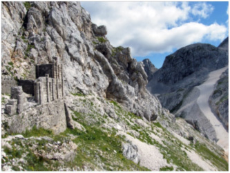 Poi, di lì, verso Sella Prevala con una marcia estenuante, i piedi affondati nell’abbondante neve posatasi al suolo, incespicando a volte e scivolando su un terreno improbabile privo di sentieri, molestati senza tregua dai colpi dell’artiglieria nemica.
