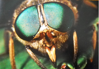 - Occhi composti: sono 2, grandi, laterali, formati da numerosissime ommatidi o lenti esagonali; vedono i colori giallo, verde, blu e l’ultravioletto. Le faccette per ogni occhio sono: 5.000 (regina), 6.300 (operaie), 13.000 (fuchi).