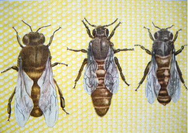 - Le api si suddividono vari compiti, a seconda dell’età: spazzine (primi 3 giorni): tengono pulite le celle e l’interno dell’alveare, allevatrici (3°/6° giorno): distribuiscono alle larve più grandi polline e miele, nutrici (6°/10° giorno): distribuiscono pappa reale alle giovani larve; effettuano i primi voli di orientamento; (10°/18° giorno): prelevano il polline dalle bottinatrici e lo pressano nelle celle, stivano il miele; dame d’onore della regina, ventilatrici (raffreddano l’ambiente con la vibrazione delle ali e con goccioline d’acqua per evaporazione), produttrici di cera, architette, costruttrici, scultrici, muratrici, opercolatrici, operaie chimiche (arricchiscono il miele con acido formico per la conservazione), guardiane; (18°/20° giorno): assicurano la difesa dell’alveare, necrofore; (dal 20° giorno): bottinatrici.