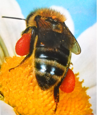 - Colori: le api percepiscono il rosso come grigio scuro; vedono il rosso-porpora come fosse blu (il rosso è percepito dalle farfalle diurne); sono sensibili all’ultravioletto (il papavero per noi è rosso, per le api è ultravioletto); percepiscono il bianco come verde-bluastro; confondono il giallo con il rosso-arancio e il verde-giallastro; il violetto con il rosso-porpora. – Nello spettro che noi vediamo, l’ape vede soltanto il giallo, il verde-bluastro, il blu e l’ultravioletto. Distinguono bene soltanto il blu, il giallo, il nero, il bianco. Distinguono il bianco-piombo (che riflette i raggi ultravioletti) dal bianco-zinco (che assorbe i raggi u.v.: lo percepiscono come verde-bluastro), per noi indistinguibili.