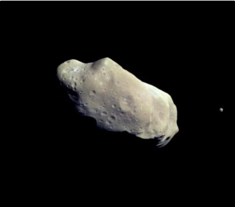 (Nelle foto, tratte da Wikipedia: qui a fianco l’asteroide 951 Gaspra e, più avanti, il 243 Ida con la sua luna Dattilo)