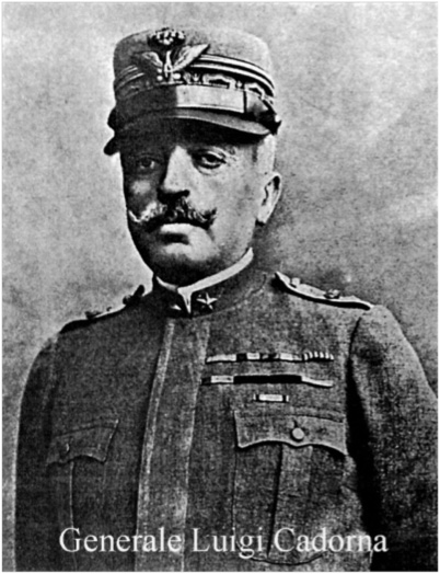 Il 23 ottobre 1917, proprio il giorno prima che scoppiasse la tragedia di Caporetto, il capo di Stato Maggiore dell’Esercito Italiano, gen. Luigi Cadorna, si era recato di persona sul fronte tenuto dal IV corpo d’Armata al cui comando si trovava il gen. Alberto Cavaciocchi. (La foto è tratta da Wikipedia)