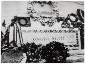 Un’attenzione particolare va prestata a quell’atto conclusivo e celebrativo della Grande Guerra, tutto rivolto agli Onori da tributarsi ai Caduti e Dispersi, per i quali si volle indicare uno fra essi, assolutamente anonimo, quale simbolo e memoria di tutti i sacrifici prodigati nei 41 mesi del conflitto italiano. L’iniziativa non era nuova. Come riferiscono Valerio Gigante, Luca Kocci e Sergio Tanzarella (Prima Guerra mondiale. La grande menzogna, Il Giornale – Biblioteca Storica, Milano 2015), “Comincia la Francia e diventa il modello per gli altri. Dai campi di battaglia di ciascuna delle nove regioni militari in cui è suddiviso viene esumato il corpo di un soldato senza identità. I nove cadaveri vengono poi portati nella Cripta della fortezza di Verdun… dove un sergente, ferito in guerra, ne sceglie uno. Poi il corpo viene trasportato a Parigi e sepolto sotto l’Arc de Triomphe.