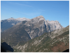 - Monte Rombon: La commissione, risalendo l’Isonzo, raggiunse la cima del Rombon (foto a lato) e, dopo lunghe ricerche, dietro una parete di roccia rinvenne una croce senza nome; sotto la croce fu rinvenuto un corpo non identificato. Rimossa poca terra e pochi sassi, un cranio. Si continuò a scavare nella direzione indicata dalla posizione del viso e apparvero subito le ossa disarticolate di un fante ancora rivestito della sua uniforme. Nessun elemento lasciò presumere una possibilità di identificazione. Era soltanto un soldato d’Italia. Pietosamente ricomposto, fu portato a Gorizia. Mancavano ancora tre salme per completare l’opera.