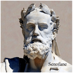 Senofane (VI-V secolo), nato a Colofone (Asia Minore, Mare Egeo), l’abbandonò nel 545 0 540 a causa dell’invasione dei Persiani (546) e viaggiò molto. A lui si attribuiscono: la denuncia della grossolana ingenuità dell’antropomorfismo religioso; l’affermazione vigorosa dei caratteri che convengono alla divinità secondo la ragione, cioè l’essere unica, ingenerata, autosufficiente, capace di mandare tutto a compimento con la sola forza del pensiero; e, infine, la fiducia nell’uomo come autonomo indagatore della verità.