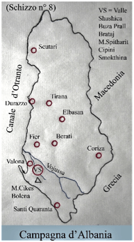 Si stava per concludere l’anno 1940 che il Saluzzo, con i battaglioni Borgo San Dalmazzo e Dronero del 2° reggimento Alpini, era partito da Foggia per Tirana e da lì a Fieri, tra l’imperversare di furiose tempeste che impedirono di trasportare anche i muli, i carri e gli automezzi. Mentre gli Alpini cercavano di organizzarsi alla meglio, in attesa che arrivassero, seppure in ritardo, le salmerie, cattiva sorte volle che il piroscafo sul quale esse erano trasportate fosse colpito da siluri con la morte dei primi Alpini in quella triste campagna, le novanta vittime della Cuneense. Con tutto ciò al 2° Alpini era stato affidato l’oneroso compito di ricacciare indietro dalla Valle Shushica i Greci e la cosa non si mostrava così facile per gli Alpini del Saluzzo e del Dronero che, privi di muli, avevano dovuto sostituire i pazienti quadrupedi caricandosi sulla schiena, ancora una volta, il necessario per i combattimenti, sino al villaggio di Brataj che raggiunsero pochi giorni prima del Natale 1940 in seguito a una marcia in condizioni pessime, sotto una pioggia battente e con i piedi affogati nel fango. Le salmerie al completo, infatti, e i mezzi di trasporto, anziché seguire gli Alpini erano rimasti a Cuneo; inviati in zona operativa, vi giunsero con un mese di ritardo e in numero ridotto a motivo dell’affondamento del piroscafo Firenze, ormai in vista di Valona.