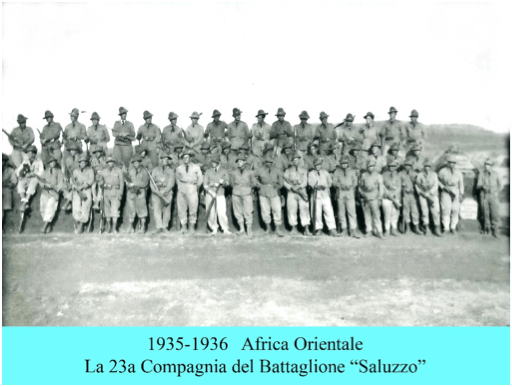 Siamo in terra d’Etiopia, con l’Esercito italiano inviato per edificare l’Impero. Ecco il battaglione Saluzzo (comandante il magg. Davide Jallà) sbarcare a Massaua il 9 ottobre 1935, forte di 882 Alpini, 42 sottufficiali e 27 ufficiali, mobilitato nella zona di Aigrat, della Piana di Mai Calaminò e, verso il gennaio del 1936, non lontano da Hausien. Ad Aigra, nei pressi di Edagà Hamus, era chiamato a svolgere lavori di costruzione stradale.