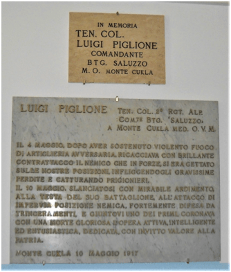 Dopo molto combattere e molto patire, gli Alpini dei battaglioni Bassano e Saluzzo si impadronirono della cima del Čukla, ma soltanto in seguito a un cruento corpo a corpo con i Bosniaci che comportò un rilevante numero di perdite da entrambe le parti. I Bosniaci, già da mesi padroni del monte, finalmente circondati, cedettero le posizioni alla Bandiera italiana che vi tornò a sventolare. Si calcolò che le tre compagnie di Bosniaci avessero subito 250 perdite, metà delle quali costituite da prigionieri. Si stimò che gli Alpini avessero lamentato 534 perdite, ivi compresa quella del valoroso tenente colonnello Luigi Piglione colpito a morte mentre avanzava alla testa del proprio battaglione, insignito quindi di Medaglia d’Oro al Valor Militare. Gli annali della Grande Guerra riservarono un posto d’Onore particolare alla riconquista del Čukla realizzata il 10 maggio 1916” (da Mario Bruno, La Grande Guerra. Accadde 100 anni fa, IBN Editore, Roma 2019).