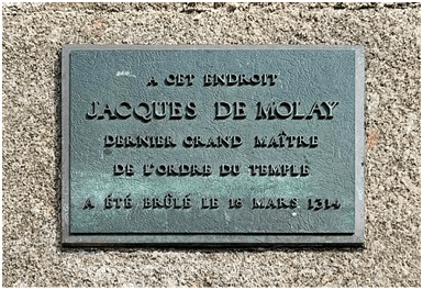 Il 18 marzo viene a ricordare la morte del maestro dei Templari, Jacques De Molay, arso vivo a Parigi il 18 marzo 1314. Non tutti sono concordi sull’indicazione del giorno: c’è chi sostiene si fosse trattato del 15 o del 16 e chi riferisce dell’11 marzo. Esiste comunque una piccola targa affissa ai piedi del Pont Neuf di Parigi, sull’Ȋle de la Cité, che riporta la data del 18 marzo. Per non andare fuori strada nel tracciare il profilo di questo personaggio di grande levatura storica, mi affido per lo più alla trattazione di Desmond Seward, I Monaci della Guerra (titolo originale The Monks of War, 1972, Ed. Umberto Allemandi & C., Torino).