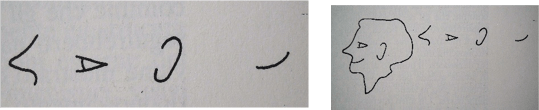 Nell’immagine a lato la prima forma (ellisse) è distinguibile in prospettiva? Dovremmo sapere di quale oggetto si tratta. Nello schizzo (fig. del bimbo con il cerchio) riconosciamo chiaramente la rotondità del cerchio.