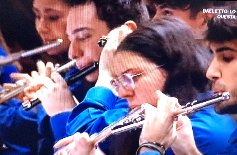 Era uno spettacolo di sottile attrazione vedere queste ragazze e questi ragazzi, persino alcuni dalle fattezze del viso ancora fanciullesche, intenti nel far vibrare di note i propri strumenti, seri nell’espressione, compiti e concentrati al massimo, precisi negli accordi e nella sincronia delle parti, con quelle dita che si muovevano agili e veloci sui tasti dei fiati, sulle corde dell’arpa e così via. Con quanta passione quei giovani si dedicavano nel creare l’atmosfera musicale, così il loro entusiasmo non poteva fare a meno di sedurre e incantare gli ascoltatori, fino anche a lasciare loro provare trascinanti emozioni.