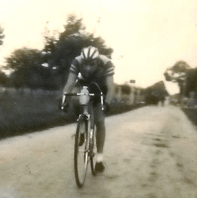È stata la mia passione. Sin da bambino sognavo la bicicletta da corsa. All’età di 17-18 anni riuscii ad averne una, nuova fiammante, una BIANCHI con la stampigliatura CAMPIONE DEL MONDO sul tubo trasversale, orgoglio del primato conquistato dal sommo Fausto Coppi nella prova per il titolo mondiale su strada il 30 agosto 1953 a Lugano. Il Campionissimo divenne subito il mio modello e per me un eccellente esempio di tecnica ciclistica.