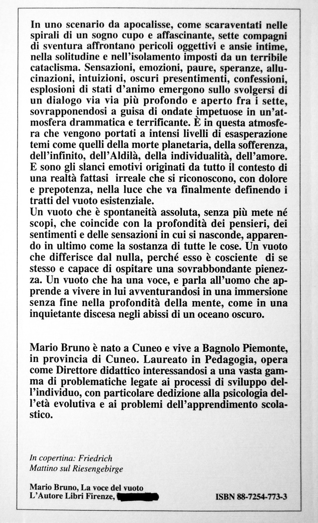 Sono gli slanci emotivi originati da tutto il contesto di una realtà fattasi irreale che si riconoscono, con dolore e prepotenza, nella luce che va finalmente definendo i tratti di un remoto vuoto esistenziale.
