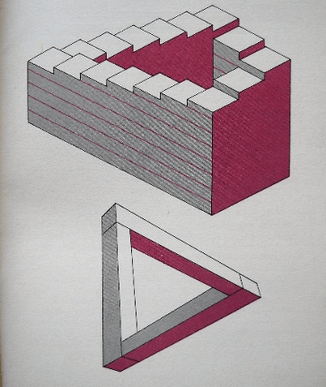 - Figure impossibili. Non danno modo di trovare una spiegazione logica in quanto tradotte nella realtà sarebbe impossibile costruire una struttura simile a quella indicata nell’immagine.