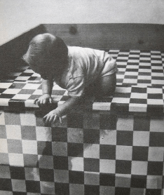- Eleanor Gibson controllò se un bambino che ancora non camminava (o un giovane animale) si sarebbe diretto sulla lastra di vetro che ricopriva il precipizio e constatò che il bambino in nessun caso si dirigeva dalla parte del precipizio.